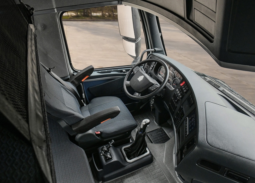 驾驶室内部空间大,可供活动范围大,通过性好;且有多个储藏空间。